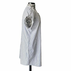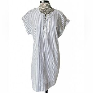 J. Crew Lace Up Striped Shirt Dress Blue White Large