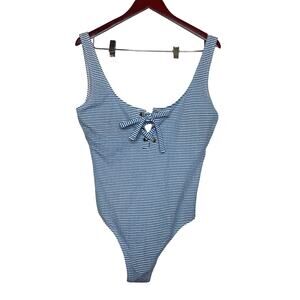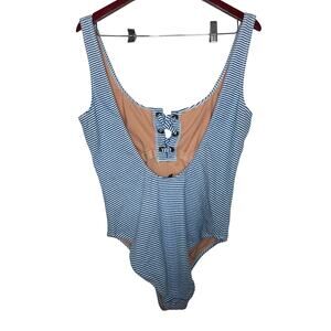J. Crew Lace-up one-piece in faded blue stripe sz 14. Worn once. Washed and steamed. cool lace-up detail in the front. It's crafted from our soft swim fabric with slightly faded stripes for a vintage seersucker vibe.