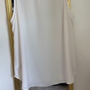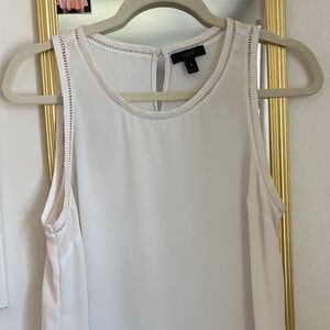 J Crew Ladder Trim Drapey Sleeveless Top in Pure White size 8. Curved hem with ladder arm and neck trim. In great condition - barely worn! Minimalist, chic, perfect for business casual or dinner and drinks after work! Lightweight material is great for summer.