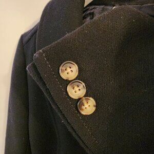 Design Details: Flattering classic lady coat, hidden side pockets, tortoise buttons, lined with Thinsulate