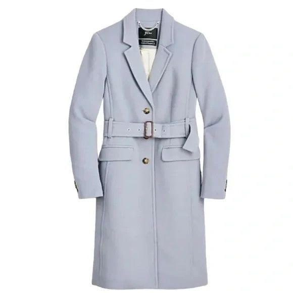 Make a statement this season with the J.Crew Belted Lady Day Topcoat in the stunning, hard-to-find Beachside Blue. This is a timeless, feminine take on the classic overcoat, meticulously tailored from exclusive Italian double-cloth wool for exceptional warmth and structure.