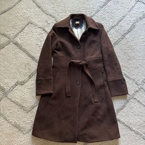 J Crew Lady Day chocolate brown wool coat belted peacoat 6