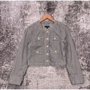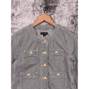 J Crew Lady Jacket 2 Womens Frayed Denim Cropped In Stripe
