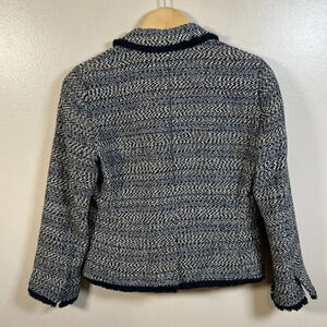 J. Crew Lady Jacket Blazer Size 2 Blue Tweed Fringe Trim Preppy Work Career