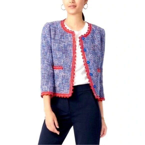 J. Crew Lady Jacket in Blue/Red Autumn Tweed Size 6 NWT