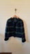 Stylish plaid tweed blazer with navy and green tones. Perfect for a sophisticated look.