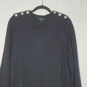 J. Crew Lamb's Wool Blend Crewneck Sweater Size L Jeweled Shoulder Buttons