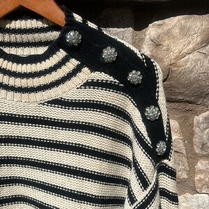 J. Crew Lambs Wool Cable Knit Sweater Mock Neck Striped Jewel Buttons Size 2X