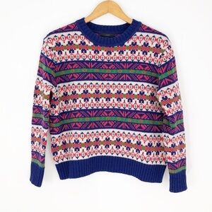 J. Crew Lambswool Classic Fair Isle Crewneck Long Sleeve Pullover Sweater Sz PM