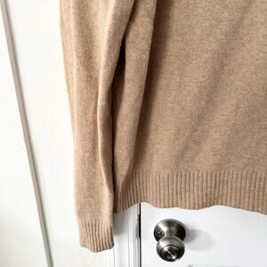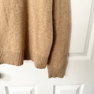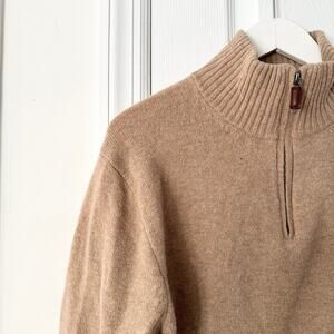 Size XLT XL tall from J Crew. Beige tan lambswool quarter zip pullover sweater knit. Leather zipper pull. Preowned in good condition with no stains or tears.