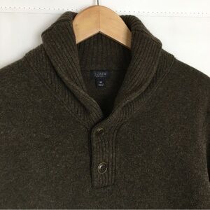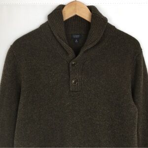 J. Crew Lambswool Sweater Shawl-Collar Brown Men’s Size Medium Distressed Flaws