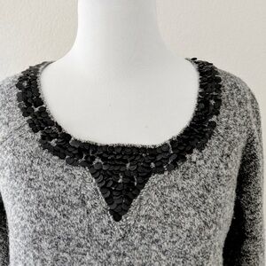 J Crew Lambswool Sweater Size Small Gray Boyfriend Black Sequin