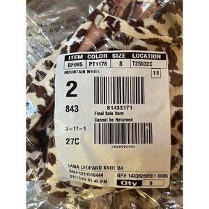 This J. Crew Lana Leopard Knot Top and Bella Bottoms Bikini Swim Suit Set features a twist front bandeau and mid-rise bottoms in a brown “Mountain White” leopard print. Perfect for a chic summer look. Size: Small.