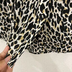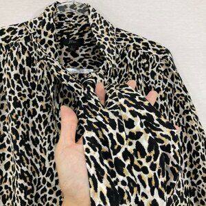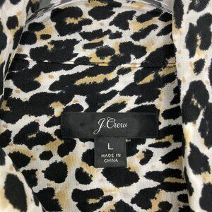 J. Crew Large Brown Black Leopard Print Pure Silk Tie Front Button Down