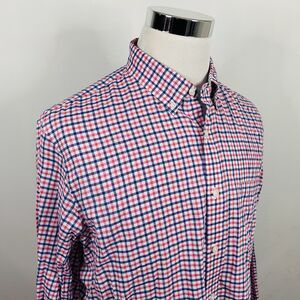 J Crew Large Slim Fit Summer Plaid Shirt Pink Blue Plaid Cotton Button Down