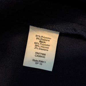 Navy blue shift dress from J. Crew Factory with laser cutout detail and a zippered back. A bit of very light discoloration (last photo), but no holes or other damage. Size 10; measures about 19 inches between the pits and 37 inches from shoulder to hem.