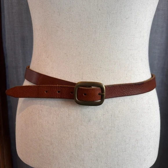 Utilitarian leather belt by J. Crew. Crafted in Italy. Genuine leather with brass buckle.