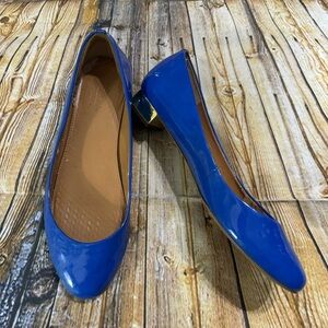 J Crew Leather Blue Gold Slip On Ballet Flats Womens Size 7.5