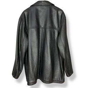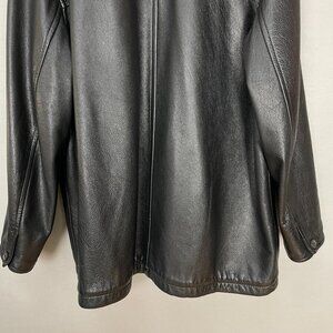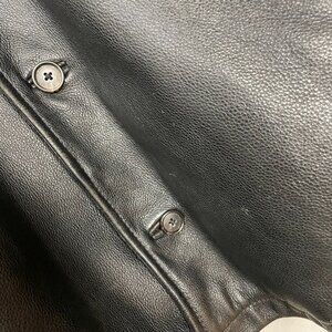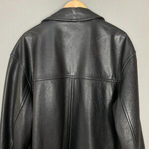 J. Crew Leather Jacket Car Coat Men Black Size XL Wool Lining Lapel Button-Up