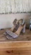A scuff on inner toe area of right shoe and on left block heel, see photos.