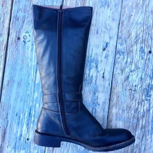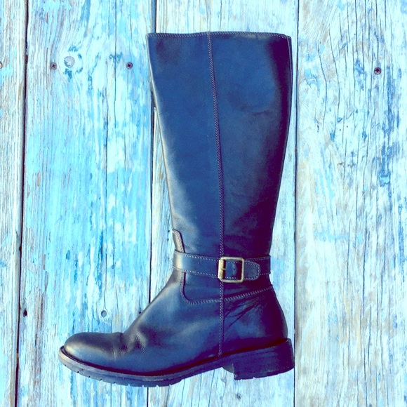 Almost perfect condition. These have a scuff on front left toe, but you can cover with polish. See pic. Super comfortable with a Lug sole. These are a great addition to any Fall wardrobe. Shaft is 15" and leg opening is 14". Zipper.