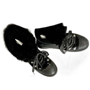 Black 100% Nubuck leather upper. Warm and cozy faux shearling lining. You can leave the sides up or fold down. Accented with cute black and white micro-dotted laces (doesn’t come with the red).