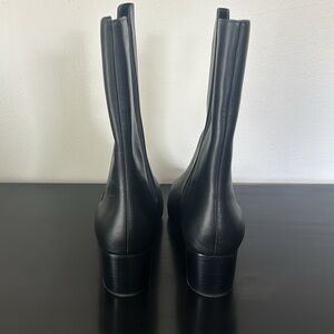 these refined leather ankle boots have a high shaft that looks extra-cool peeking out from the hem of a midi skirt or your favorite straight-leg jeans. Detail we love: Stretchy side panels make them easier to take on and off.