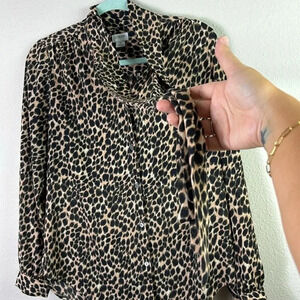 J. Crew Leopard / Cheetah / Animal Print Tie Neck Long sleeve Button Down sz XS