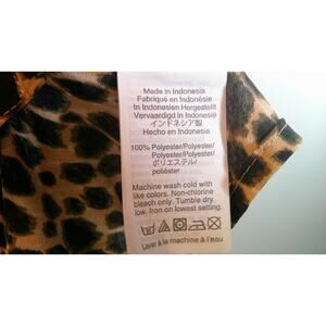 The product is a stylish J Crew leopard blouse with a tie neck in size M. It features a long sleeve with puff sleeves, a leopard print pattern in multicolor, and a crew neck with a tie closure. Made from polyester, this blouse is designed for women and has a regular fit. Perfect for adding a touch of fierce animal print to any outfit, this blouse is a trendy and fashionable choice for any wardrobe.