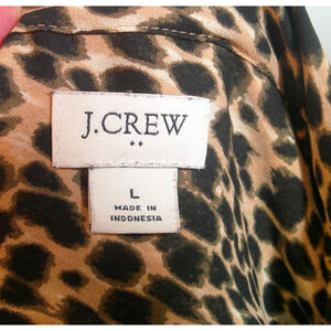 J. Crew Leopard Long Sleeve Blouse Tie Neck Women's Large