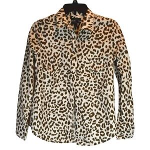 J. Crew Leopard Perfect Shirt Linen Blend Brown Cream G2458 Button Down Size 2