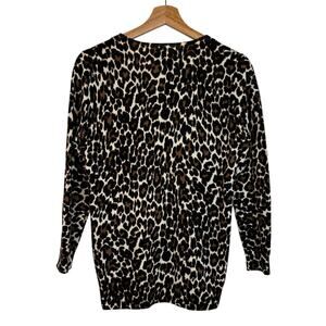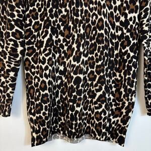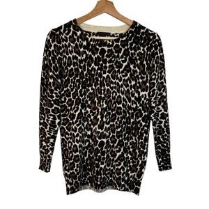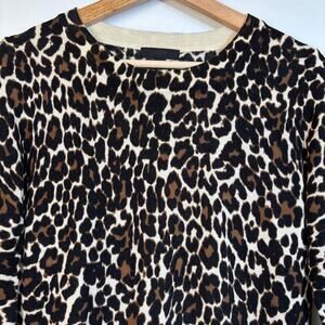 J Crew Leopard Print 100% Merino Wool Sweater Size Small round Neck Stretch