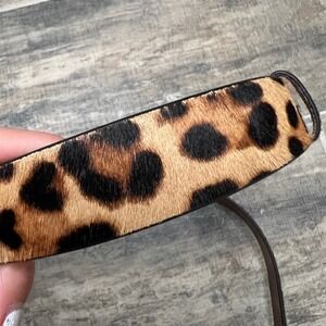 J Crew Leopard Print Calf Hair Genuine Leather Belt Gold Buckle Women L3620