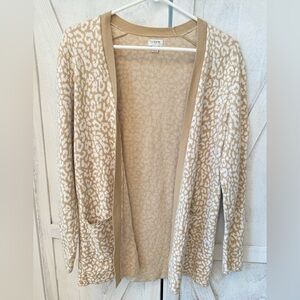 J. Crew Open Cardigan Women's Small Tan & White Animal Print Pockets Oversize