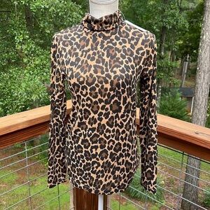 J. Crew Leopard Print High Neck Long sleeve Blouse Size M NWT Mob Wife Stretchy