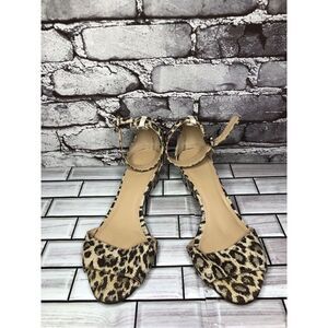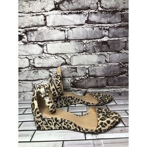 J. Crew Leopard Print Metallic Laila Leopard Wedge Ankle Strap Sandals Women 8M