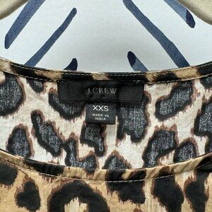 This is a super cute leopard print top from J. Crew! It has 3/4 length sleeves that have a double ruffle down them. Size XXS but does have a bit of an oversized fit. Like new!