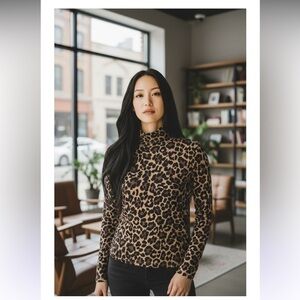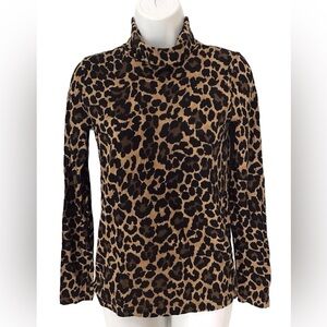 J Crew Leopard Print Turtleneck Long Sleeve Top Size XS