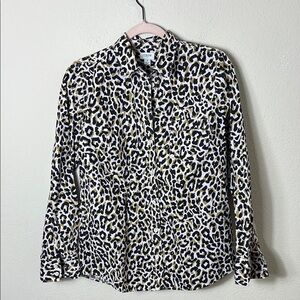 J. Crew Leopard print in soft pink button down shirt size small 100% cotton