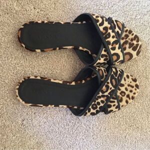 Step out in style with these chic leopard print slide sandals. Perfect for any casual outing, these sandals offer both comfort and fashion.