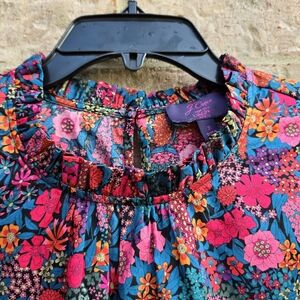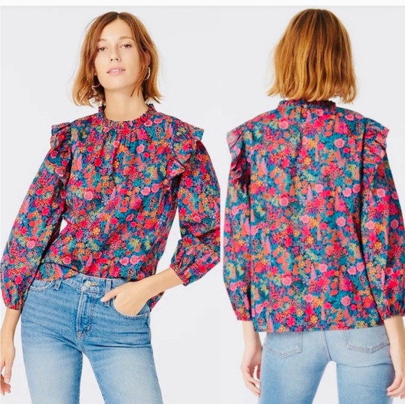 Elevate your style with this vibrant floral ruffle top. Perfect for any occasion, this multicolor design adds a pop of color to your wardrobe.