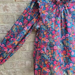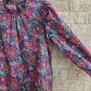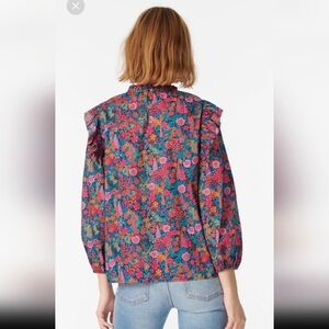 J. Crew Liberty Ciara Ruffleneck Flutter Sleeve Floral Top Pleated Pink Small