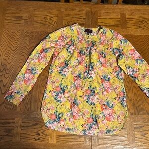J. Crew Liberty Fabric Magical Bouquet Classic Popover Top in Yellow Floral Sz 0
