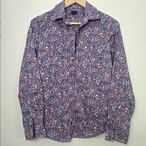 J. Crew Liberty Fabric Size 4 Kayoko Indigo Sunset Floral Button Perfect Shirt