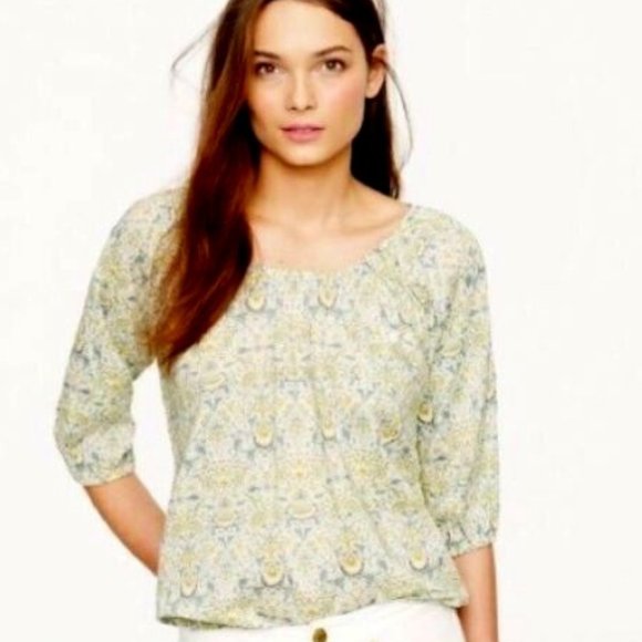 J. Crew Liberty London Peasant Lodden Paisley Cotton Casual Shirt Top Blouse XS