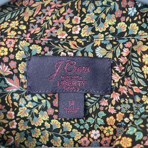 The J. Crew Perfect Shirt in Womens size 14 features a vibrant Liberty Marquess print on a slim-fit, button-up design. Made from 100% cotton, this shirt is lightweight and breathable, making it suitable for various occasions including parties, casual outings, workwear, and business meetings. The multicolor floral pattern adds a touch of classic and preppy style, while the slimming fit and long sleeves provide a modern and polished look. Perfect for all seasons, this shirt is a versatile addition to any wardrobe. Made in China, this J.Crew shirt is machine washable for easy care.