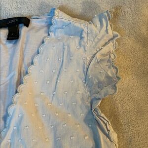 This elegant blue blouse from J. Crew features a stylish ruffled design and a fitted silhouette, perfect for adding a touch of sophistication to any outfit.