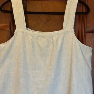 Chic light blue denim top. Front pleat details bring on the charm. PTP measurements are 19”. Very clean with no stains or flaw ~ from my personal closet. I am a smoke free home. Thanks for looking!