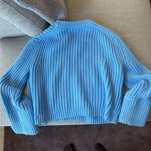 Chic light blue sweater with ribbed design. Ideal for layering.