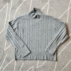 This mock neck, oversized, boxy fit sweater from J. Crew is knit from the softest blend of merino and alpaca wool. It had a ribbed pattern. In great condition. No stains, holes or pulls. Only worn a few times and dry cleaned once. 22” pit to pit, 23” length, 22” sleeves.